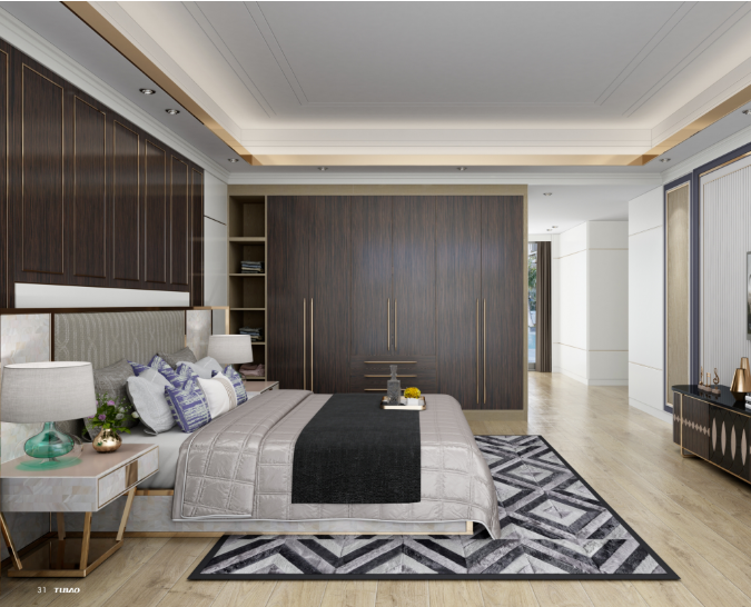 表面的科技木皮既保留了天然木材调温、调湿、隔热、绝缘的自然属性,又在加工过程中避免了天然木材固有的节疤、虫洞、色差、腐朽等自然缺陷,让家装更具品质感。