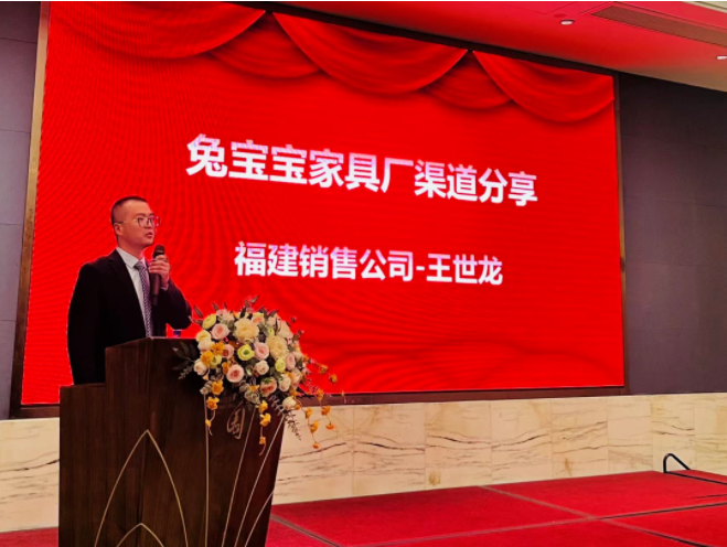 其次,兔宝宝福建销售公司闽南销售部王世龙作家具厂渠道分享,从大盘洞察家具市场,细分内部现状,对家具厂开发流程和角色定位进行分析,更加关注厂商方案和一级服务的体验,配合公司游学,座谈会,推荐会等方式提高合作黏性,通过整体解决方案,实现双赢。
