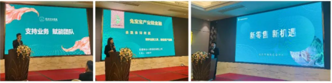 电商运营中心俞建杰先生作新零售新机遇分享,指导大家如何利用兔宝宝新媒体矩阵打破市场僵局,拓宽营销思路。商学院周孝栋介绍商学院课程支持业务,赋能团队,为经销商提供学习渠道。德华小贷公司龚维芳女士围绕经销商面临问题及解决办法,着重介绍德华小贷的金融赋能小微助销的金融服务。