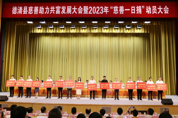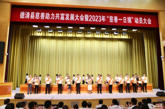 9月1日,德清县慈善助力共富发展大会暨2023年“慈善一日捐”动员大会召开,德华集团被授予德清慈善奖——“机构捐赠贡献奖”,德华集团总经理程树伟上台领奖。大会期间,德华集团还向德清共富基金捐款80万元。
