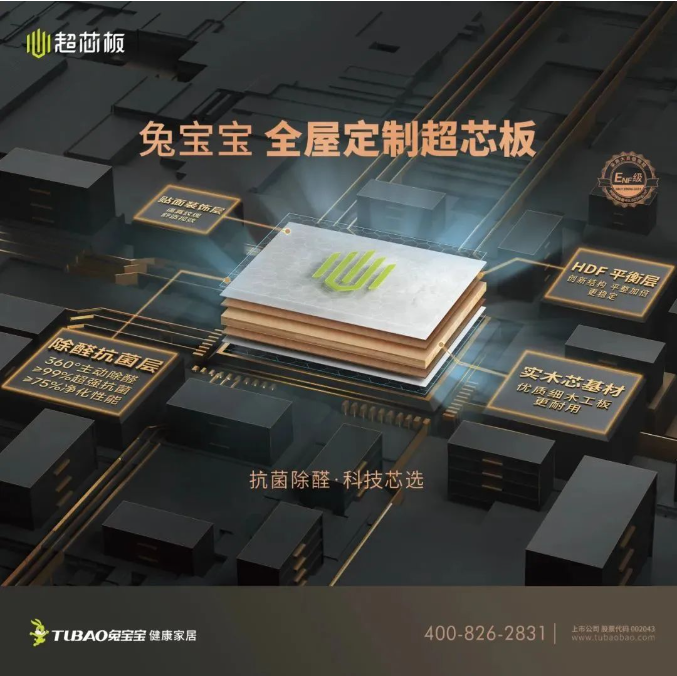 兔宝宝以环保品质为核心,不断攻坚环保板材,更新技术提高环保标准。兔宝宝推出了全屋定制超芯板,那今天小编就来扒一扒我们的全屋定制超芯板到底具有哪些优势?