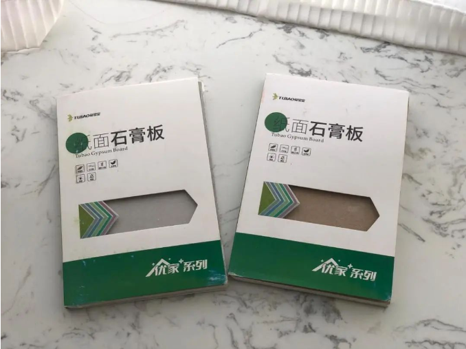 每一块出厂的兔宝宝石膏板产品不仅有严格的包装标识还有防伪商标。兔宝宝优家系列石膏板样板,可以看到有严格的包装标识。