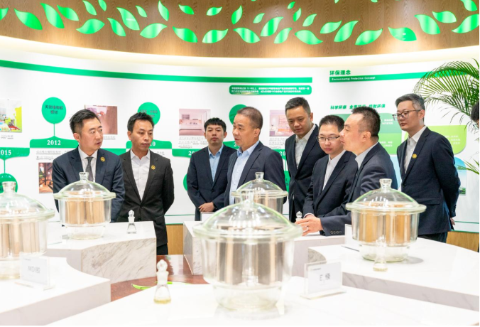 三棵树胶黏剂事业部总经理董鹏华一行先后参观了兔宝宝研究院、装饰材料展厅和成品定制展厅,赵建锋总经理详细介绍了企业的产品、发展历程及获得的荣誉。董鹏华一行对兔宝宝的绿色发展理念及获得的成就给予了高度的评价,尤其是对兔宝宝大豆植物胶表示强烈的兴趣。