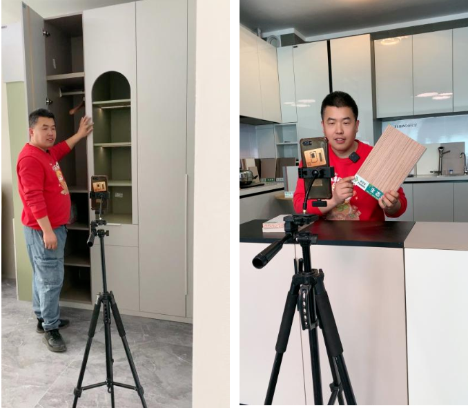 起初,他对线上运营并不熟悉,对于拍摄和直播更是没有接触过,甚至有些抵触。然而,经过与兔宝宝公司新零售业务板块人员的沟通,让他逐渐克服了恐惧,并勇敢的踏出了直播的第一步。