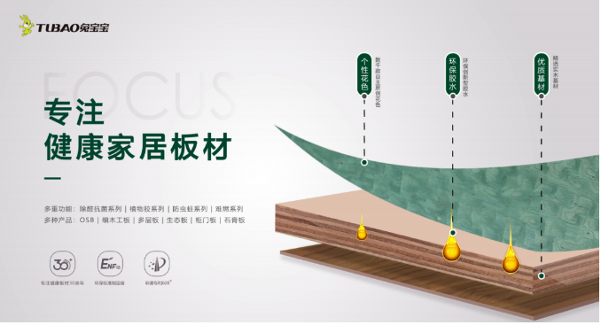 不仅如此,兔宝宝还始终坚守“让家更好”的理念,深耕于家居建材领域,不断创新发展,升级产品的环保等级,从E1级到E0级再到ENF级,甚至是除醛抗菌。并推出了多款功能性板材,有除醛抗菌生态板、植物胶板材、难燃胶合板等,以满足市场和消费者的多样化需求,更为消费者提供全方位、一站式的解决方案,让消费者享受到更加便捷、舒心的购物体验。