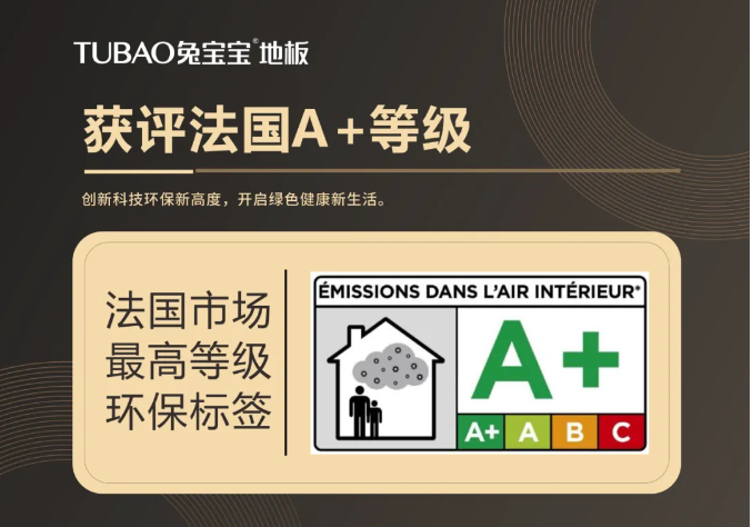 近日,兔宝宝地板通过SGS专业检测评价,顺利获评法国VOC标签中最高环保等级A+认证,这是地板产品畅销全国和欧美市场,继欧盟CE、美国Floorscore等认证后获得的第7个官方品质证明。兔宝宝不断提升行业声誉和客户信任的同时,再次展现了公司在健康家居研发和生产方面的行业领先地位。